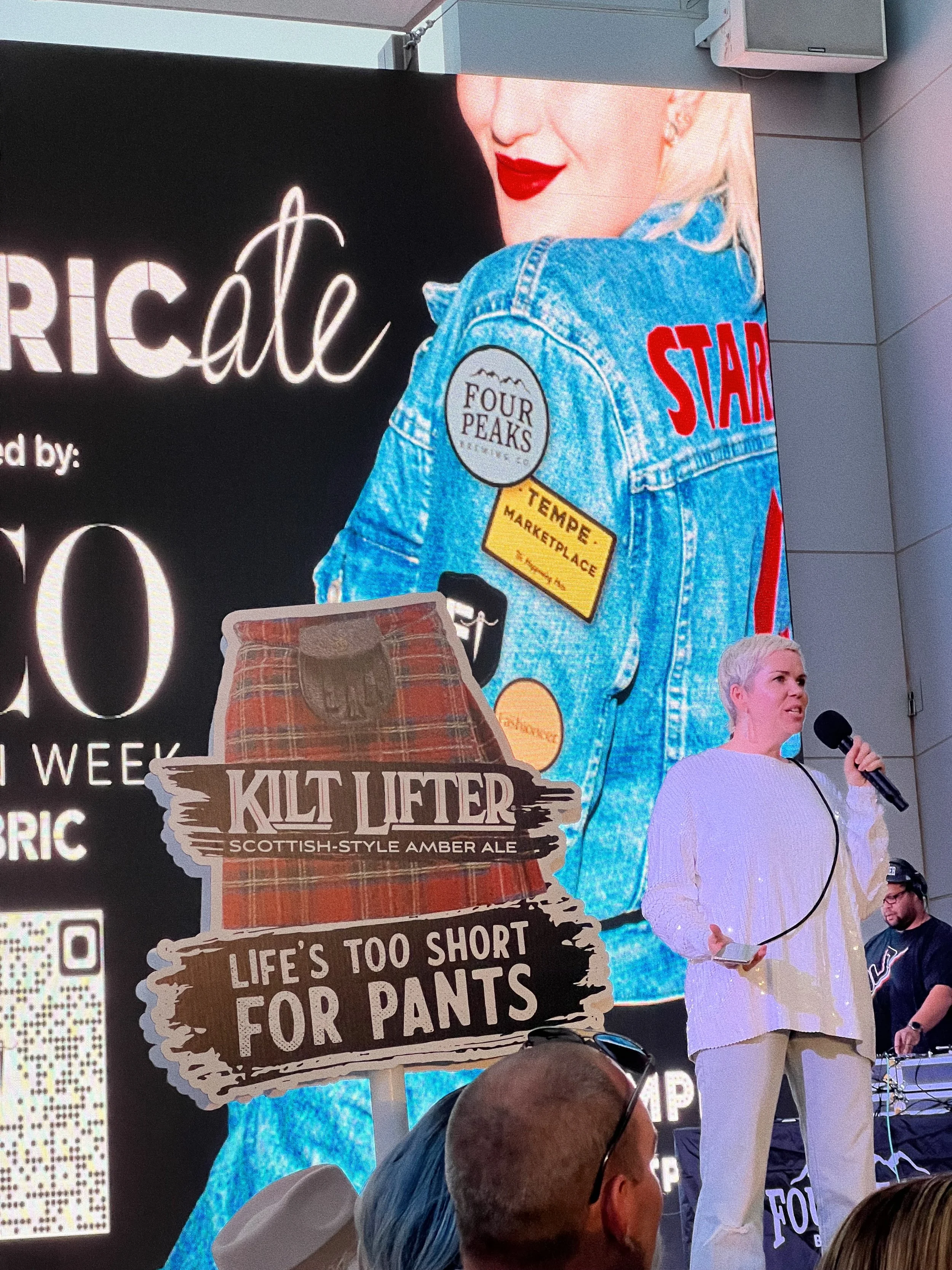 Tempe-based Four Peaks Brewing Co. & non-profit FABRIC Tempe hosted a unique 25th-anniversary Kilt Chaser Fun Run. Four Peaks Brewing Co. asked Kilt Chaser Fun Run participants to ditch their denim and grab a kilt this year to bring awareness about textile waste in the fashion industry. On April 22nd, 2022, Four Peaks Brewing Co. and non-profit FABRIC Tempe hosted reFABRICate, where we asked local fashion artists to create and repurpose the donated denim.